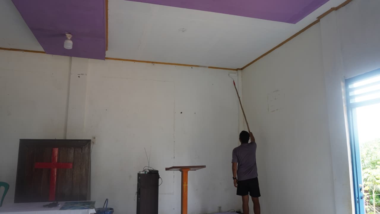 Dia menekankan pentingnya penggunaan cat dasar untuk memudahkan proses pengecatan selanjutnya dan meningkatkan kualitas hasil akhir. Setelah cat dasar mengering, proses pengecatan utama pun dilanjutkan agar Gereja Pelita Kasih terlihat lebih rapi dan indah.