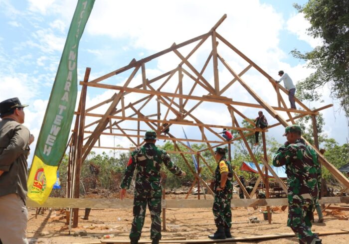 Satgas TMMD dan Warga Tetap Semangat Angkut Semen Jelang Penutupan di Desa Talio