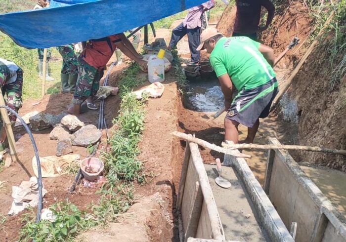 Pengerjaan rumah ini merupakan bagian dari program fisik TMMD yang bertujuan memberikan solusi nyata atas keterbatasan tempat tinggal masyarakat kurang mampu. Dengan tiang-tiang rumah yang sudah berdiri, struktur dasar bangunan mulai terbentuk secara nyata.