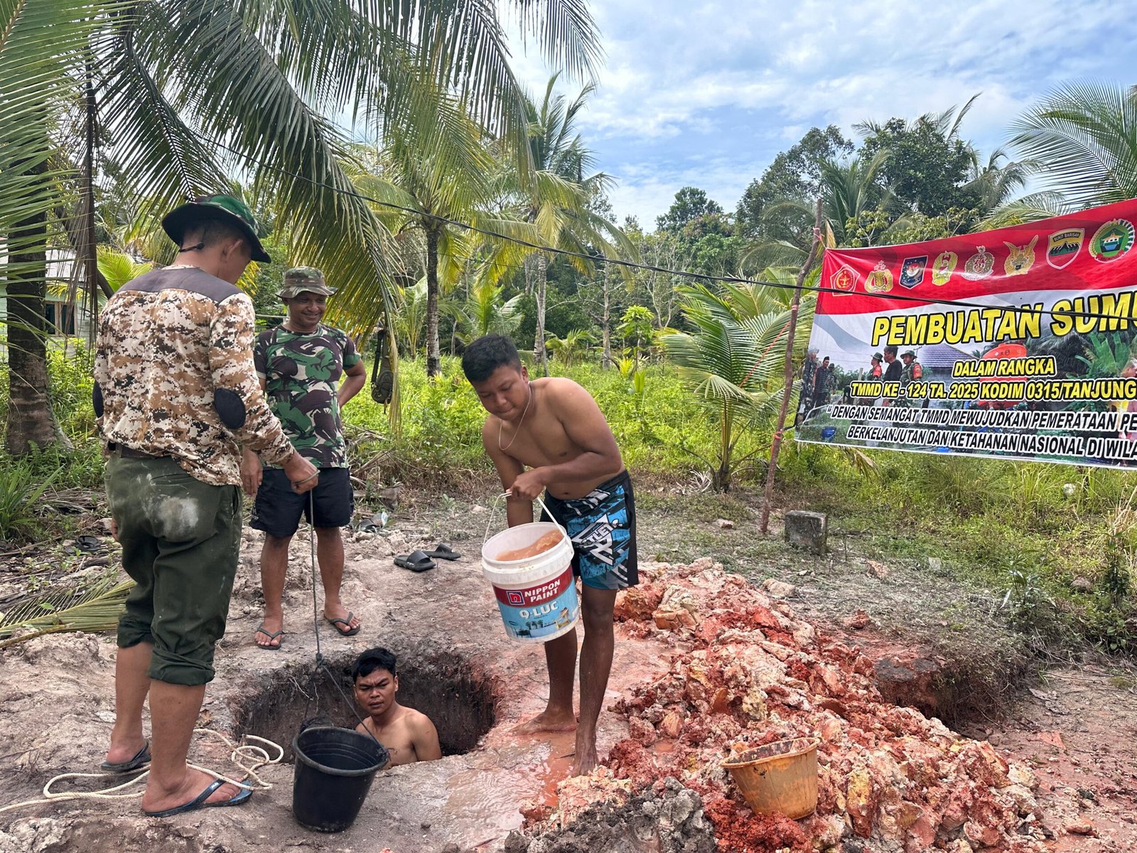 Dalam rangka mendukung program TMMD Ke-124, Kodim 0315/Tanjungpinang saat ini tengah melaksanakan pembuatan sumur konvensional di Desa Panggak Laut, Kecamatan Daik, Kabupaten Lingga. Proses pengerjaan sumur ini memerlukan perjuangan panjang dari Satgas TMMD, hingga akhirnya berhasil menemukan sumber mata air yang diharapkan dapat memenuhi kebutuhan masyarakat setempat.