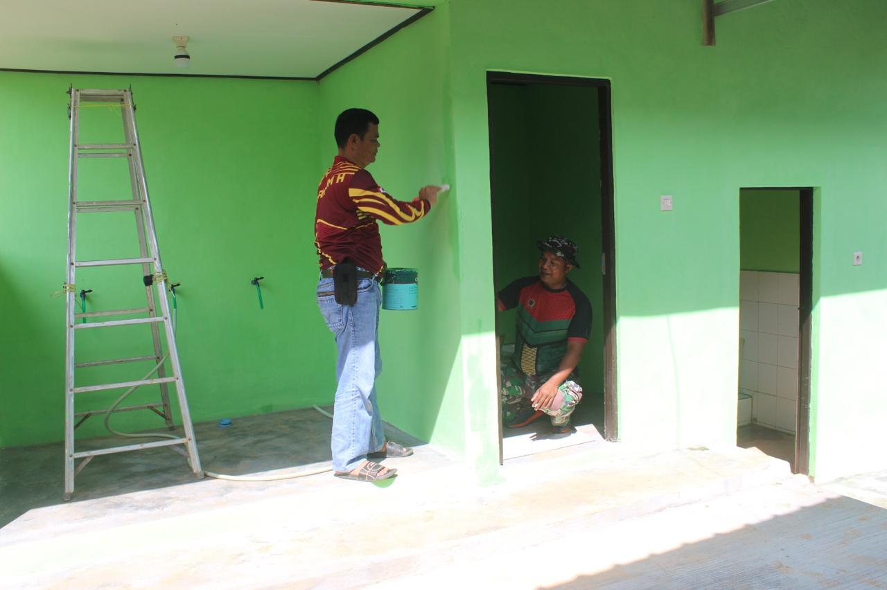 Hal ini nampak saat personel satgas TMMD ke-124 di sasaran tersebut tengah mengerjakan proses merapikan sisa-sisa cat baik di dinding bagian luar dan dalam maupun cat pintu mushola darul Huda tersebut. Mushola yang dibangun dilengkapi dengan fasilitas plafon lengkap dengan instalasi listrik serta kipas angin di bagian dalam ruangan.