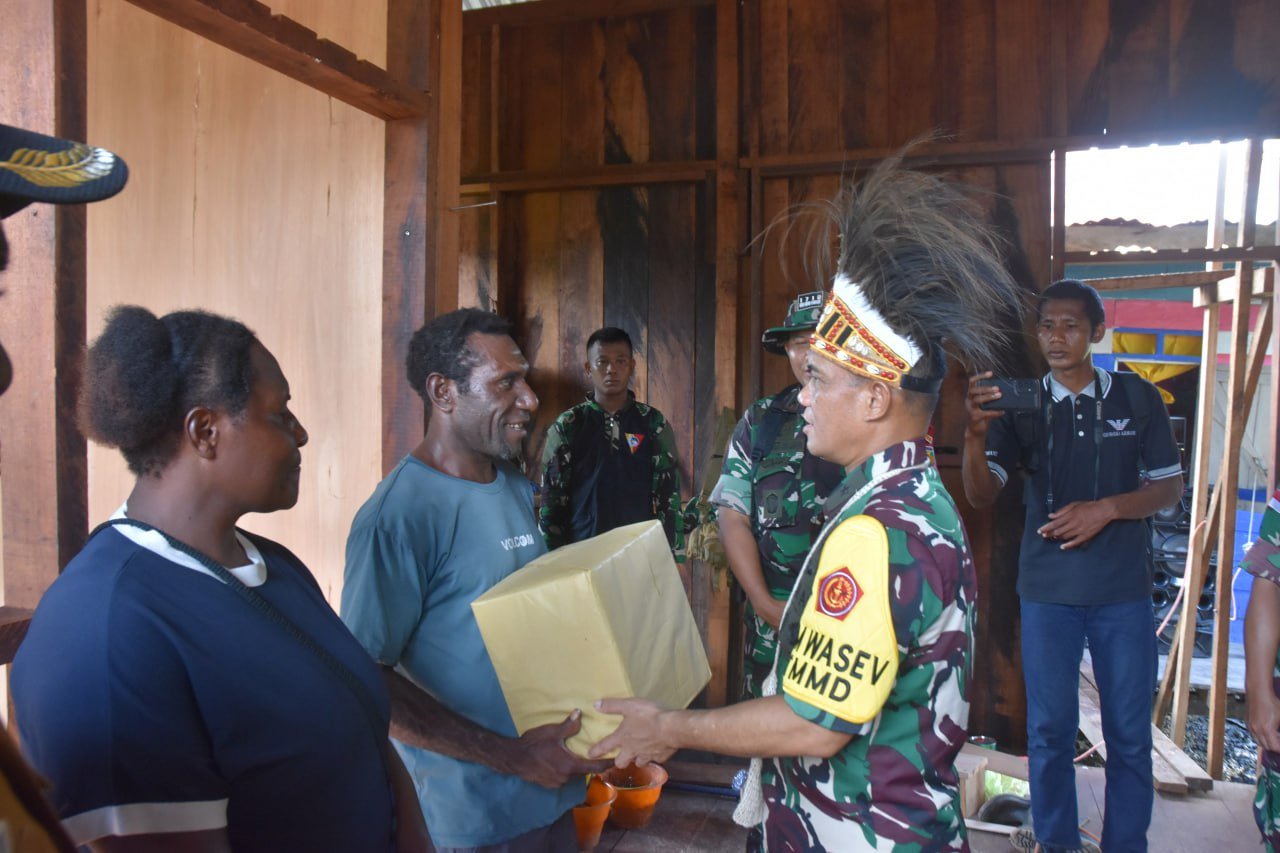 Selanjutnya Tim Wasev melakukan peninjauan terhadap beberapa sasaran yang dibangun oleh Satgas TMMD, antara lain: Pembangunan rumah type 36, Pembangunan MCK dan sumur bor, serta perehaban gereja. Peninjauan dilanjutkan dengan menuju sasaran pembukaan lahan tidur menjadi lahan produktif, tim Wasev berkesempatan menyerahkan bantuan kepada kelompok tani Noken Naena berupa bibit, pupuk, obat dan alat pertanian.
