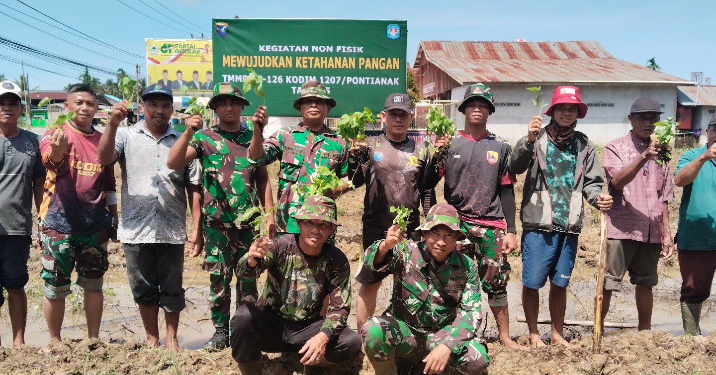 Kubu Raya, 19 Oktober 2025 – Satgas TNI Manunggal Membangun Desa (TMMD) ke-126 Kodim 1207/Pontianak terus memperkuat komitmen dalam meningkatkan kesejahteraan masyarakat pedesaan. Kali ini, Satgas bersama warga Desa PAL IX melaksanakan kegiatan peningkatan ketahanan pangan di Jalan Kakap, Desa PAL IX, Kecamatan Sungai Kakap, Kabupaten Kubu Raya, Provinsi Kalimantan Barat, Minggu (19/10/2025).