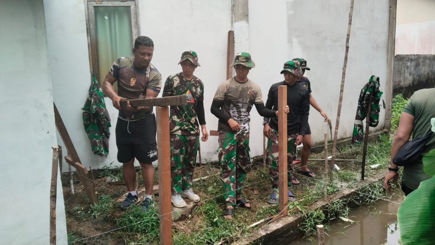 Pemasangan rangka tandon air dilakukan secara bergotong-royong antara personel Satgas TMMD dan masyarakat, mencerminkan semangat kebersamaan yang menjadi ciri khas program TMMD.