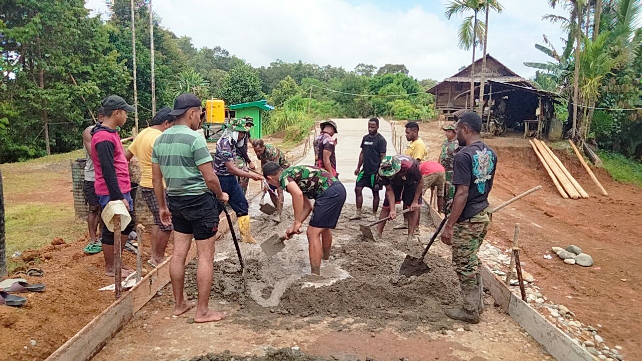 Boven Digoel — Program TNI Manunggal Membangun Desa (TMMD) ke-126 Kodim 1711/Boven Digoel terus menampakkan hasil nyata di Kampung Waropko, Distrik Waropko. Salah satu fokus utama kegiatan fisik tahun ini adalah pengecoran jalan penghubung antarperkampungan yang kini telah memasuki tahap lanjutan.
