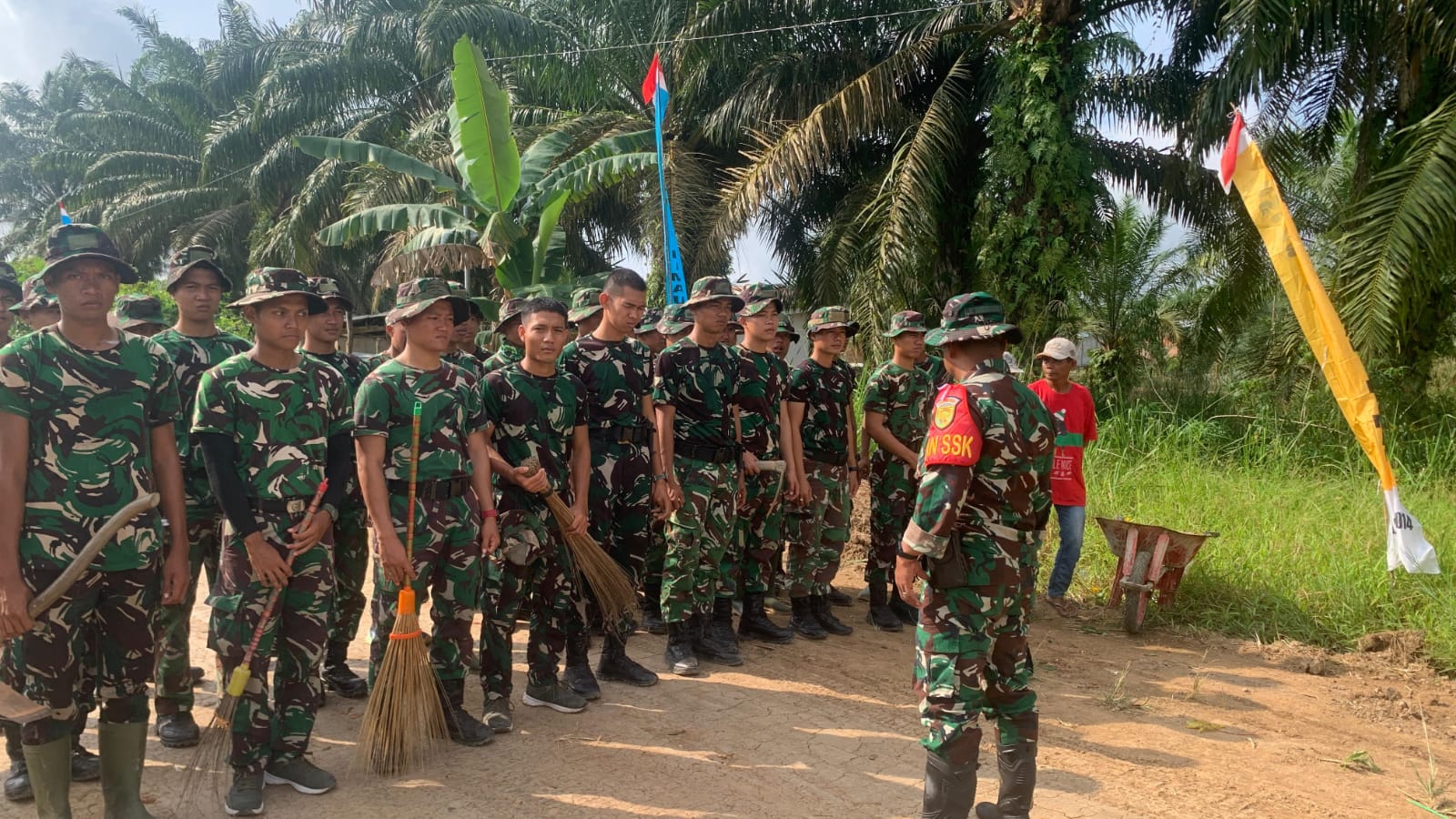 Usai apel, anggota Satgas segera melakukan pembersihan di sekitar lokasi pembukaan TMMD yang berlokasi di SMP Negeri 3 Pulau Rimau. Pembersihan mencakup merapikan halaman sekolah, mengangkut sampah, dan menata area agar terlihat bersih dan nyaman untuk kegiatan upacara pembukaan.
