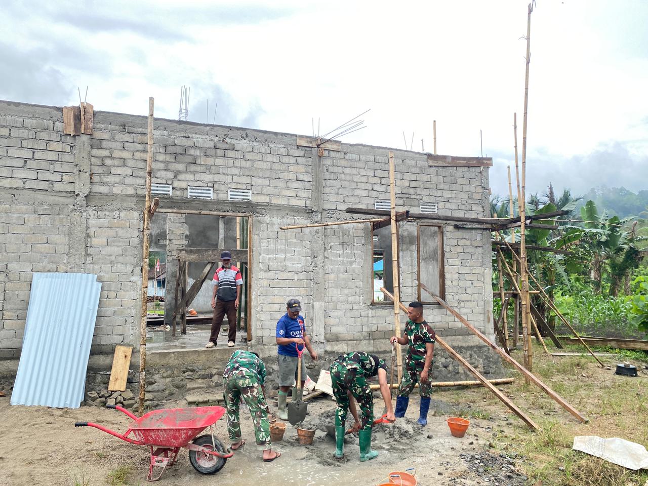 Selama kegiatan hari ini, personel Satgas bekerja sama dengan warga setempat untuk fokus pada pengerjaan struktur bangunan, termasuk pemasangan dinding dan perapian interior. Semangat gotong royong tampak terlihat dalam setiap tahap pekerjaan, mencerminkan komitmen bersama untuk menyelesaikan proyek ini tepat waktu.