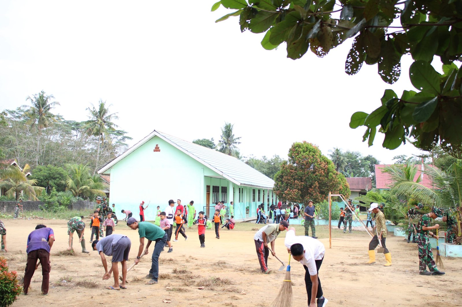 Kegiatan ini dilakukan sebagai bentuk kepedulian TNI terhadap lingkungan pendidikan serta untuk menyambut HUT Kemerdekaan Republik Indonesia ke-80 yang akan diperingati dalam waktu dekat. Para personel Satgas bersama warga dan guru-guru bahu membahu membersihkan halaman sekolah dari rumput liar, sampah plastik, serta merapikan taman sekolah.
