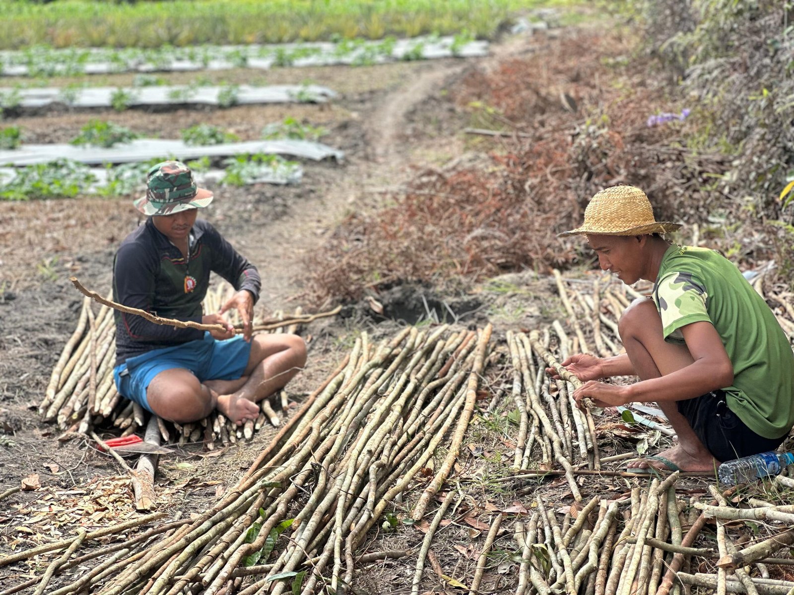 Pembuatan tempat rambatan sayuran ini merupakan bagian dari upaya Satgas dalam mendukung ketahanan pangan lokal dengan memberikan fasilitas yang memudahkan pertumbuhan tanaman sayur secara optimal.