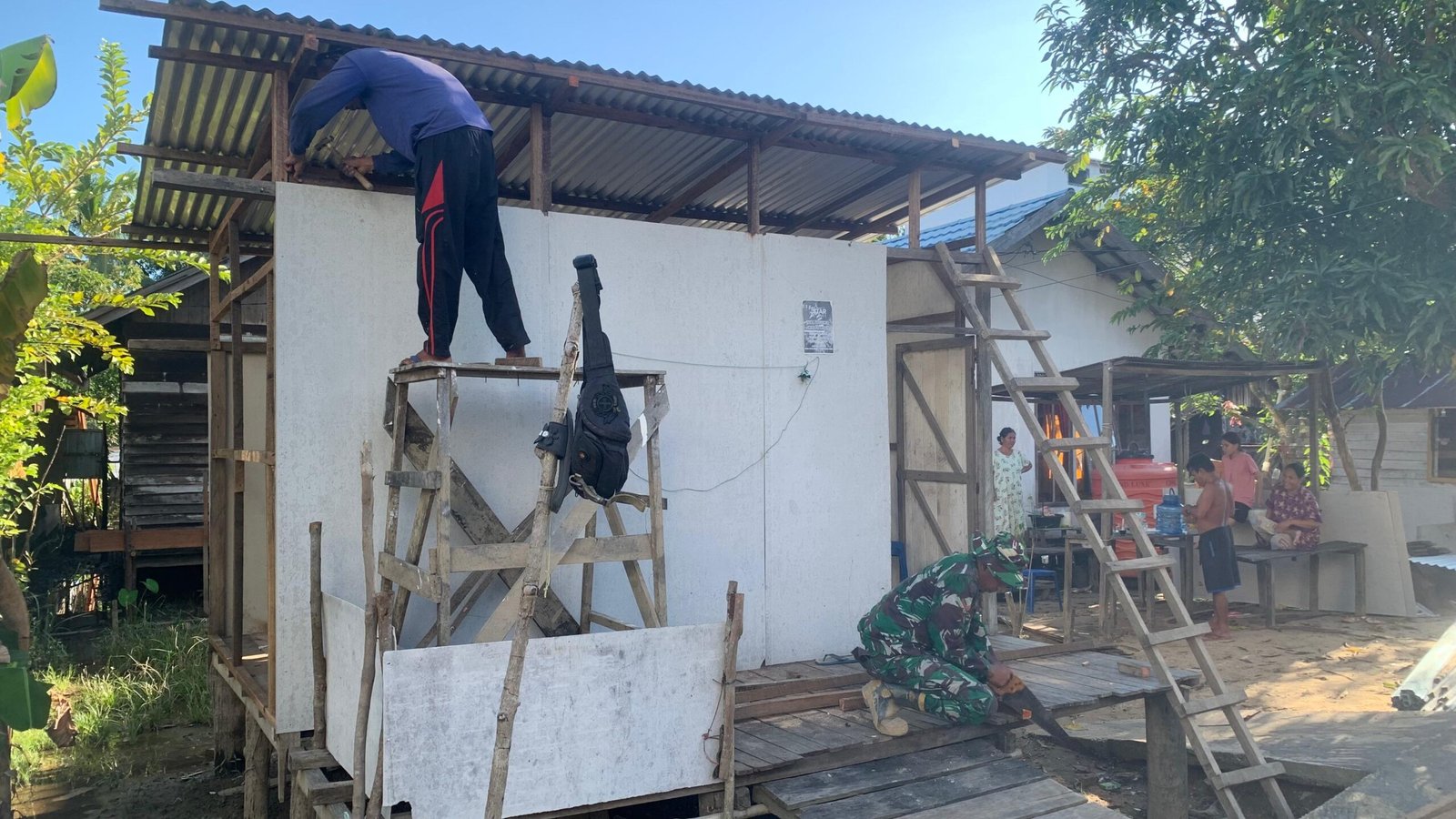 Proses pemasangan dinding rumah ini menjadi salah satu indikator nyata bahwa progres pekerjaan rehab rumah berjalan sesuai harapan. Dibantu oleh warga sekitar, personel Satgas TMMD bekerja secara bahu membahu demi menciptakan hunian yang layak dan nyaman untuk masyarakat yang membutuhkan.