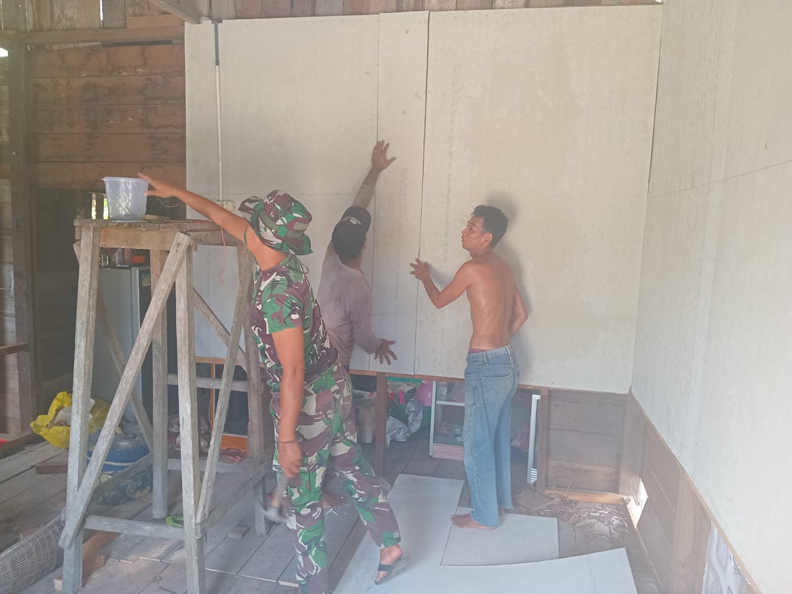Satgas TMMD Kodim 1012/Buntok Pasang Dinding RTLH di Desa Wungkur Baru
