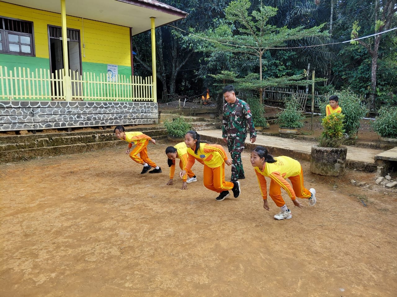 Lamandau, Selain fokus melaksanakan program fisik TMMD Reguler ke-125, anggota Satgas Kodim 1017/Lamandau juga menyempatkan diri untuk berinteraksi dengan anak-anak SD Negeri Batu Kotam. Kegiatan bermain bersama yang berlangsung di halaman sekolah tersebut membawa suasana ceria dan kehangatan Jumat pagi (1/8).