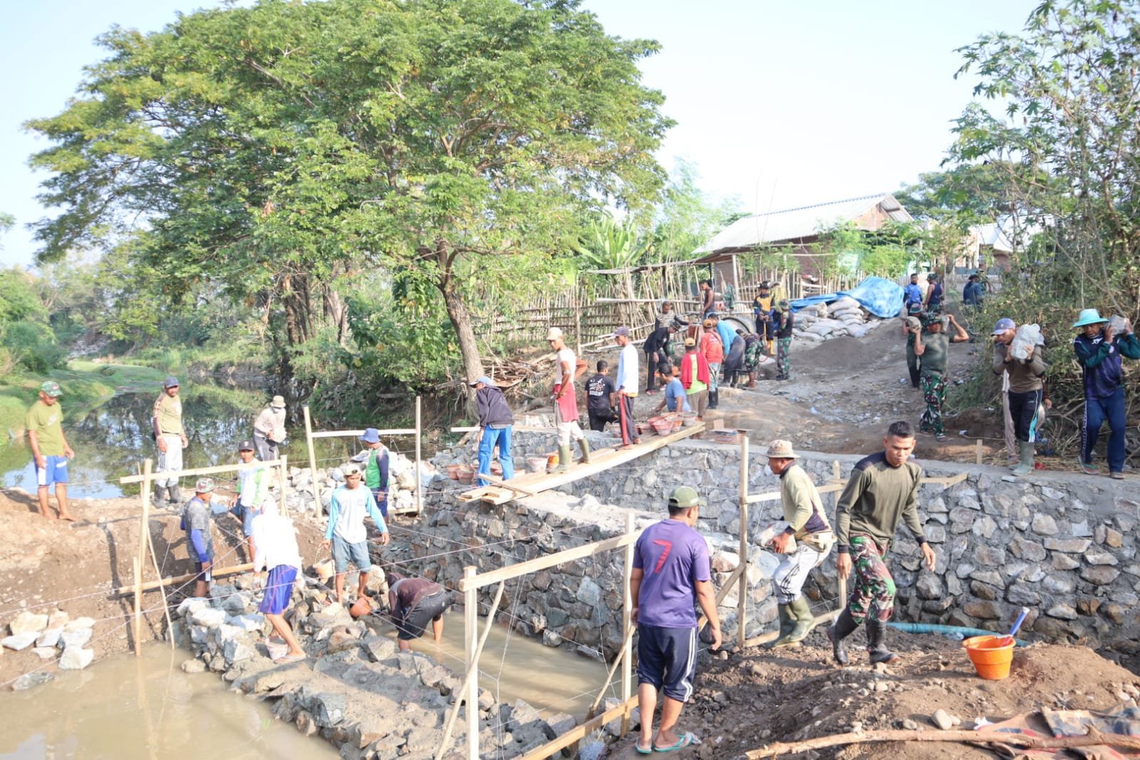 Warga sekitar juga turut aktif dalam pengerjaan, mulai dari mengangkat material, membantu proses pengecoran, hingga menyediakan logistik bagi personel di lapangan. Kolaborasi ini menjadi wujud nyata semangat gotong royong yang terus dijaga dalam setiap tahapan TMMD.