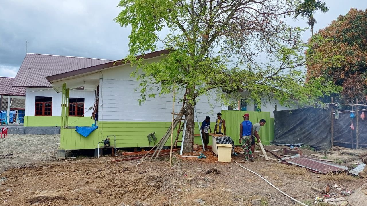 Kegiatan pembersihan ini dilakukan dengan penuh kebersamaan. Anggota satgas TNI dan masyarakat tampak bekerja bahu-membahu, sebagian mengangkut sisa material, sebagian lainnya merapikan halaman sekitar bangunan.