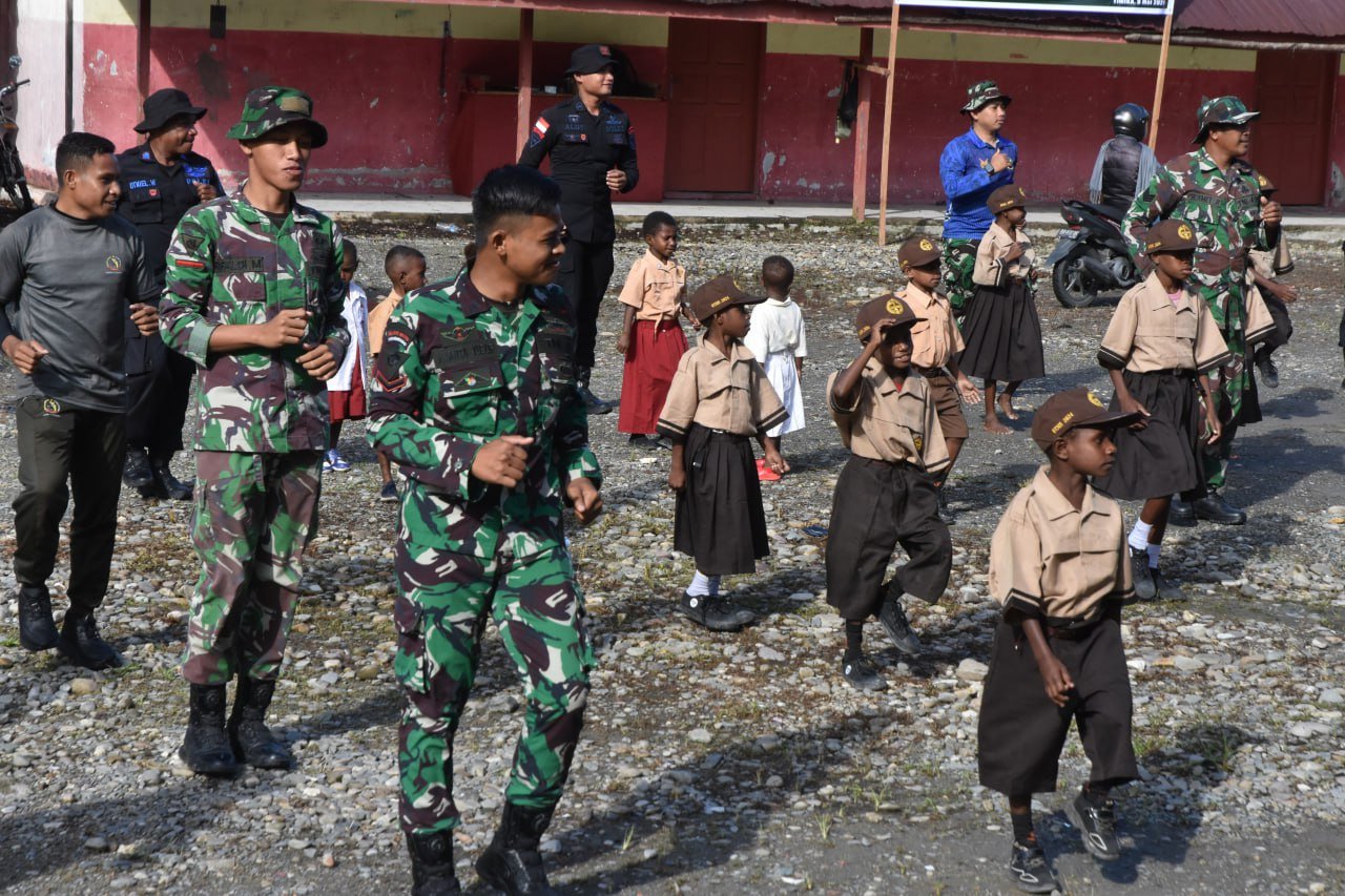 Mimika, 9 Mei 2025 – Dalam suasana penuh semangat dan keceriaan, Satgas TNI Manunggal Membangun Desa (TMMD) ke-124 Kodim 1710/Mimika menggelar kegiatan senam pagi bersama siswa-siswi SD Negeri Pigapu, Distrik Iwaka, Kabupaten Mimika. Kegiatan ini menjadi salah satu cara Satgas TMMD membangun kedekatan dan menumbuhkan semangat belajar di kalangan generasi muda.