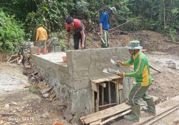 Jembatan ini sebelumnya hanya berupa struktur sederhana dari kayu dan tanah yang mudah rusak saat hujan deras. Kini, melalui TMMD, jembatan diperkuat menggunakan material beton dan struktur pendukung besi, agar mampu menahan beban kendaraan roda dua dan roda empat yang melintas.