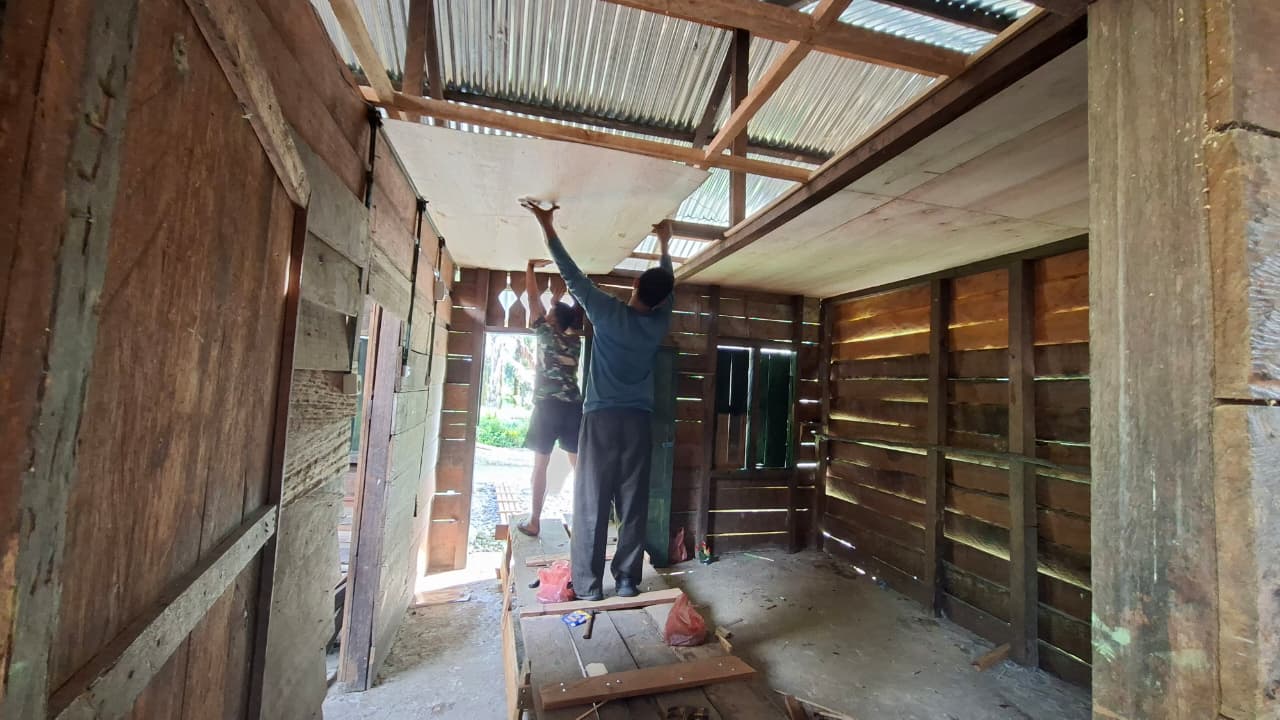 Memasuki hari pengerjaan terbaru, Selasa (24/2/2026), Satgas TMMD melanjutkan tahap pemasangan plafon pada RTLH ke-4. Pekerjaan tersebut menjadi bagian dari proses penyempurnaan bangunan agar rumah benar-benar layak huni dan nyaman ditempati.