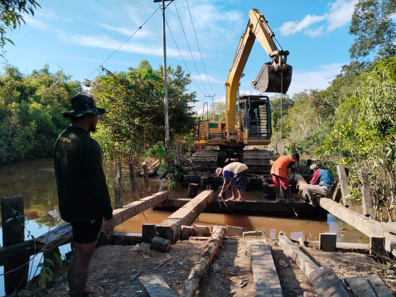 Barito Selatan, 26 Mei 2025 — Satuan Tugas (Satgas) TMMD Reguler ke-124 Kodim 1012/Buntok mulai membongkar jembatan lama yang menghubungkan Dusun Danau Ganting dengan Desa Talio, Kecamatan Karau Kuala, Kabupaten Barito Selatan. Pembongkaran ini menandai dimulainya salah satu sasaran fisik utama dalam program TMMD Tahun Anggaran 2025.