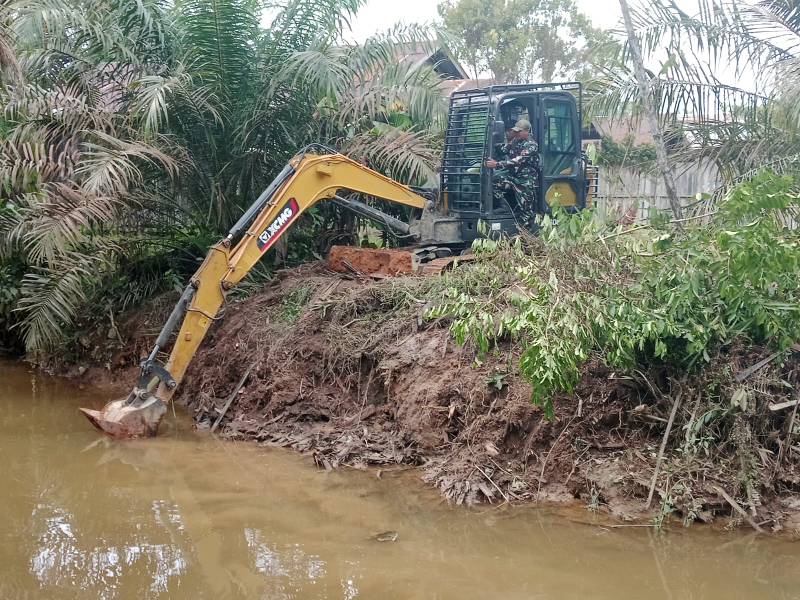 Kotawaringin Timur – Satuan Tugas (Satgas) TMMD Reguler ke-127 Kodim 1015/Sampit terus berupaya memaksimalkan penggunaan alat berat dalam rangka mendukung pelaksanaan sasaran fisik program TMMD di Desa Bukit Indah, Kecamatan Telaga Antang, Kabupaten Kotawaringin Timur pada Sabtu, 7 Maret 2026. Salah satu kegiatan yang sedang dilaksanakan adalah normalisasi sungai, yang bertujuan untuk memperlancar aliran air serta memperbaiki kondisi lingkungan di daerah tersebut.