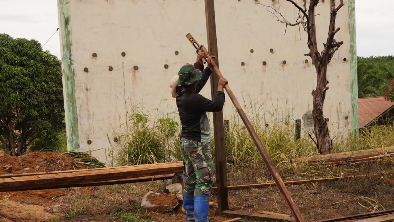 Kotawaringin Timur – TNI Manunggal Membangun Desa (TMMD) Reguler ke-127 Kodim 1015/Sampit menunjukkan kepedulian yang tinggi kepada masyarakat melalui aksi nyata membantu warga mendirikan tiang rumah di Desa Tribuana, Kecamatan Antang Kalang, Kabupaten Kotawaringin Timur, pada Kamis (12/02/2026). Kegiatan ini berlangsung ketika personel Satgas TMMD tengah melaksanakan proyek pembangunan siring jalan di desa tersebut.