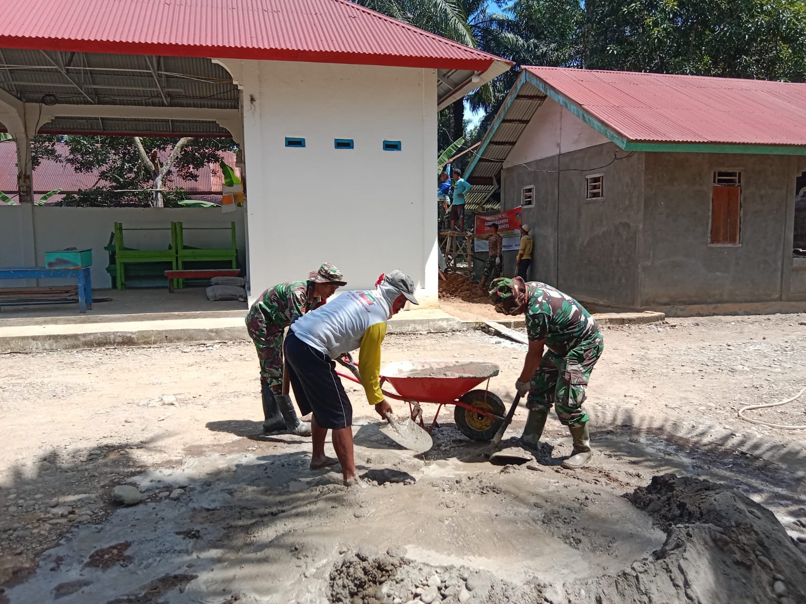 Di tengah semangat pembangunan infrastruktur air bersih, Satgas TMMD Kodim 0428/Mukomuko tampak sibuk menyiapkan campuran adukan semen dan pasir untuk pengecoran tiang penyangga toren air. Proses ini dilakukan secara manual dengan komposisi yang disesuaikan agar menghasilkan beton yang kuat.