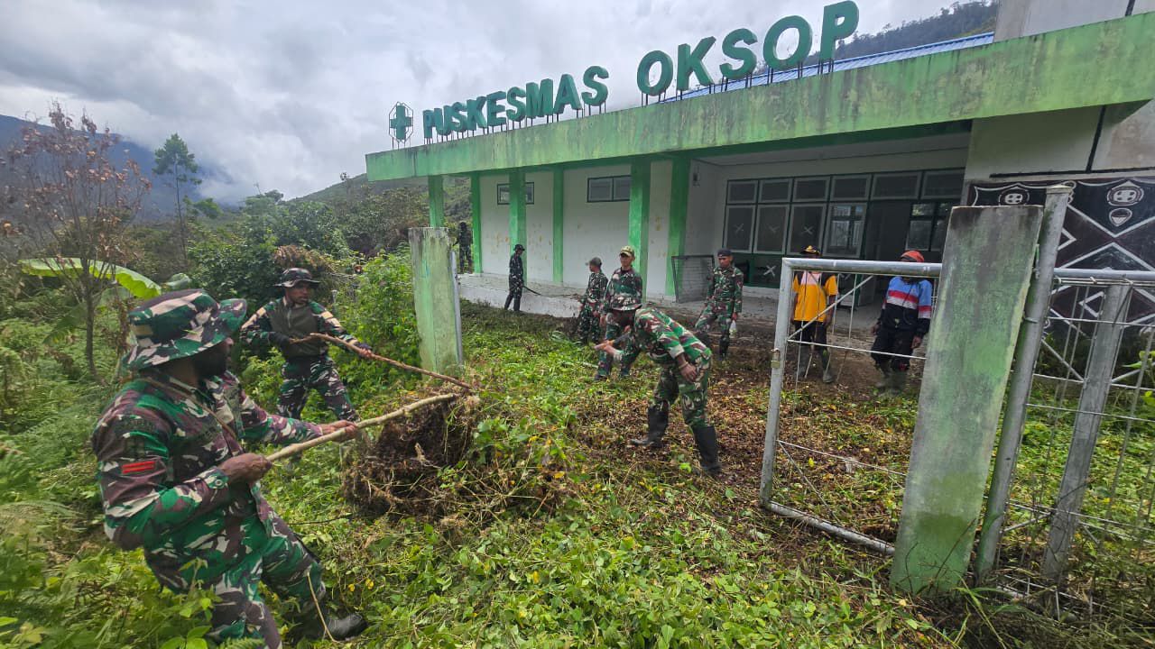 Oksop, Pegunungan Bintang — Satgas Pamtas RI-PNG Yonif 751/Vira Jaya Sakti (VJS) melaksanakan karya bakti yang bertujuan untuk membersihkan puskesmas di area sekitar Pos Oksop. Kegiatan ini berlangsung pada Rabu, 11 Februari 2026, sebagai wujud nyata kepedulian TNI dalam mendukung pengaktifan kembali fasilitas kesehatan untuk memenuhi kebutuhan masyarakat setempat.