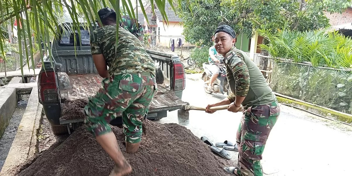 Di lokasi Desa Lubuk Tampang, Kecamatan Kikim Timur, Kabupaten Lahat, anggota Satgas TMMD terlihat bersama warga melakukan pengangkutan material pasir dari kendaraan dengan penuh semangat. Kegiatan ini berlangsung dalam suasana kekeluargaan yang sangat terasa.