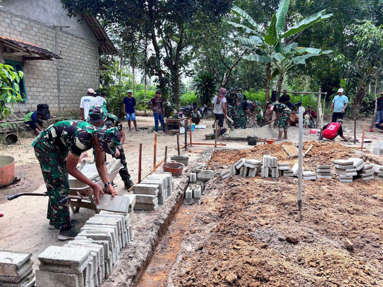 Moris Jaya, 24 Juli 2025 — Semangat kebersamaan dan gotong royong mewarnai kegiatan pembangunan pondasi Rumah Tidak Layak Huni (RTLH) di Kampung Moris Jaya, Kecamatan Banjar Baru, Kabupaten Tulang Bawang, yang merupakan bagian dari program TNI Manunggal Membangun Desa (TMMD) ke-125 Kodim 0426/Tulang Bawang.