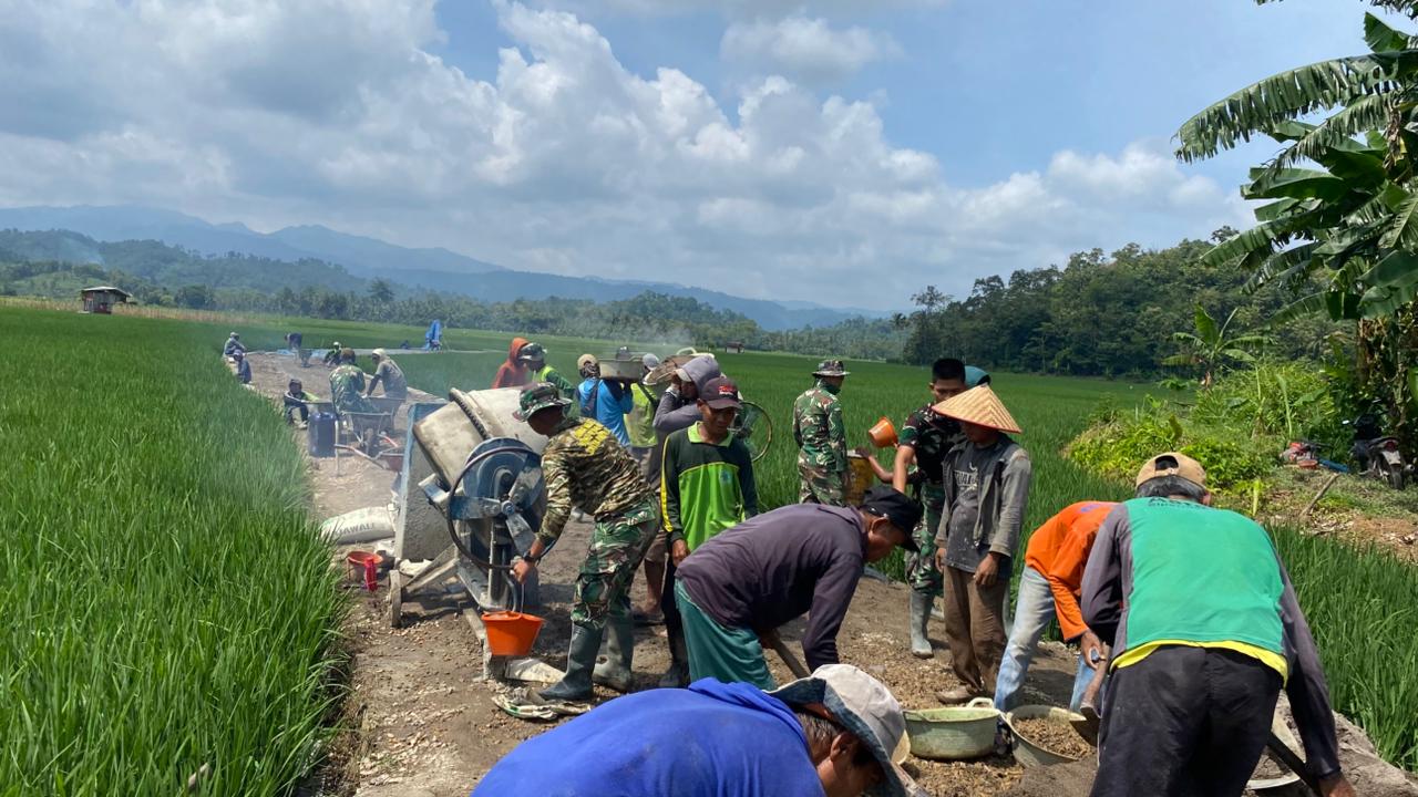 Pesawaran — Di bawah langit cerah Desa Tanjung Rejo, terlihat jelas keteguhan hati para anggota Satgas TNI Manunggal Membangun Desa (TMMD) dari Kodim 0421/Lampung Selatan. Di tengah keadaan berpuasa yang menuntut ketahanan fisik, mereka bersama masyarakat setempat berupaya mencor beton untuk pembangunan infrastruktur desa. Dengan penuh semangat, mereka mengangkat sekop, mengaduk adukan semen, dan meratakan jalan yang sedang dibangun.