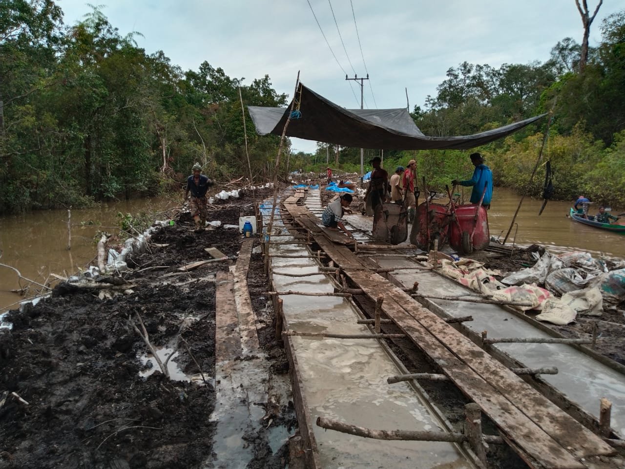 Pekerjaan akhir ini meliputi perataan permukaan jalan, penguatan sisi jalan, dan pembersihan area sekitar agar jalan siap digunakan oleh warga. Kondisi jalan yang sebelumnya sulit dilalui kini mulai menunjukkan perubahan signifikan.