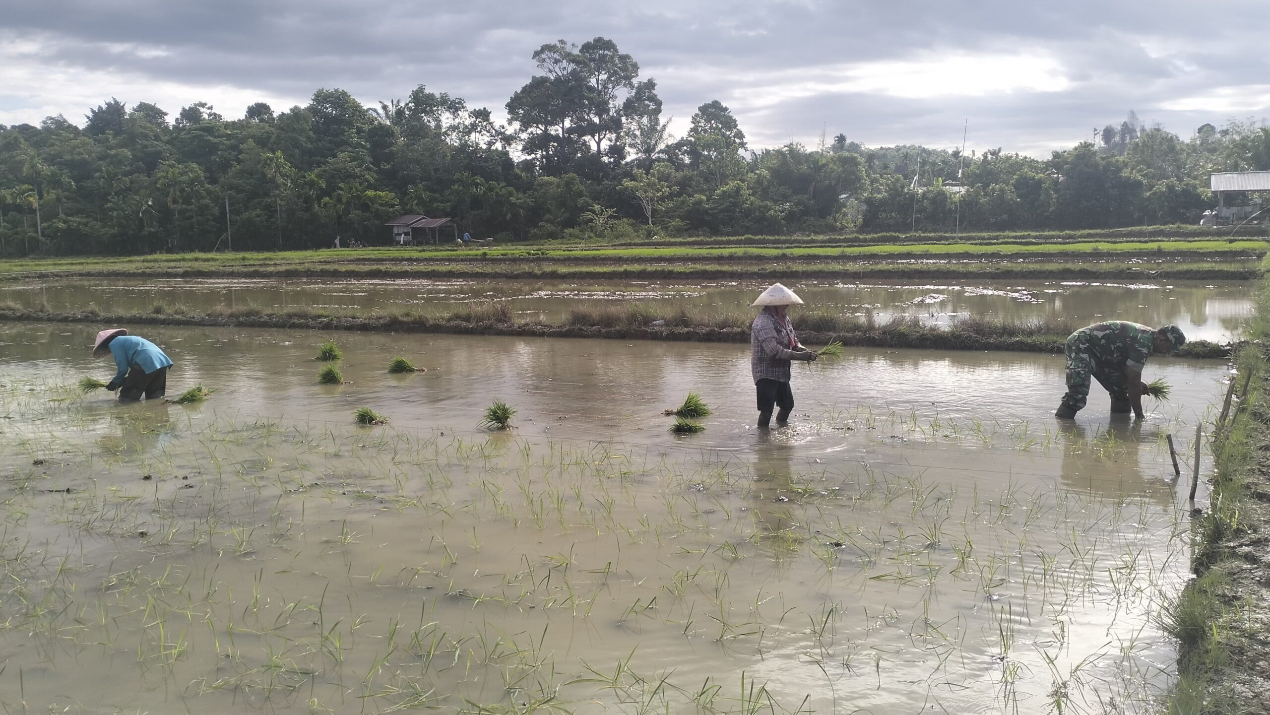 Kegiatan yang dilaksanakan oleh Serda M. Hasan ini merupakan wujud nyata kepedulian dan dukungan Babinsa terhadap sektor pertanian, khususnya dalam mendukung ketahanan pangan di wilayah binaannya. Dengan penuh semangat, Serda M. Hasan bersama para petani bahu-membahu melakukan penanaman padi, memberikan contoh nyata dalam semangat kerja keras dan kebersamaan.