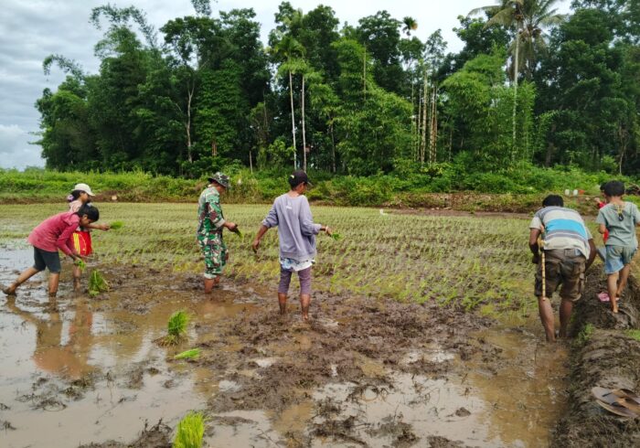 Serda M. Hasan Babinsa Darul Hikmah Turun Langsung Bantu Petani Tanam Padi