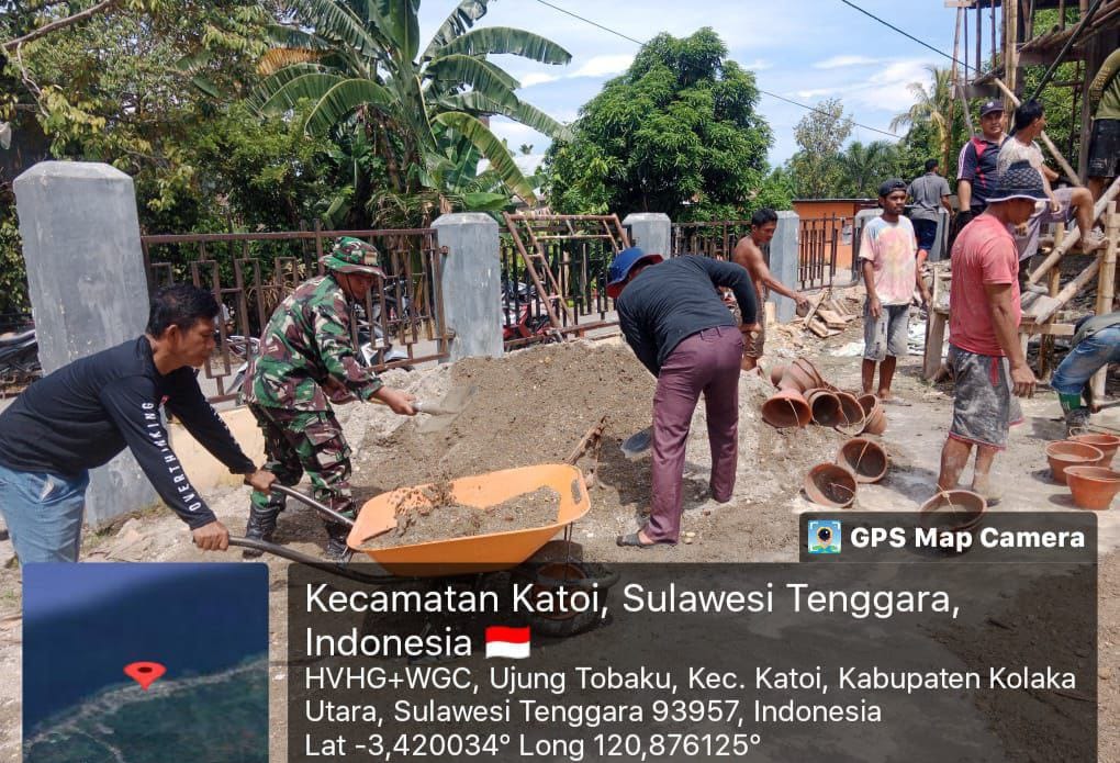 Kolaka Utara – Pada hari Senin, 9 Februari 2026, Serka Didik Wahyudi yang bertugas sebagai Babinsa Koramil 1412-03/Lasusua, terlibat aktif dalam kegiatan kerja bakti bersama masyarakat setempat untuk membantu pengecoran lantai masjid. Kegiatan ini berlangsung di Desa Tobaku, Kecamatan Katoi, Kabupaten Kolaka Utara.