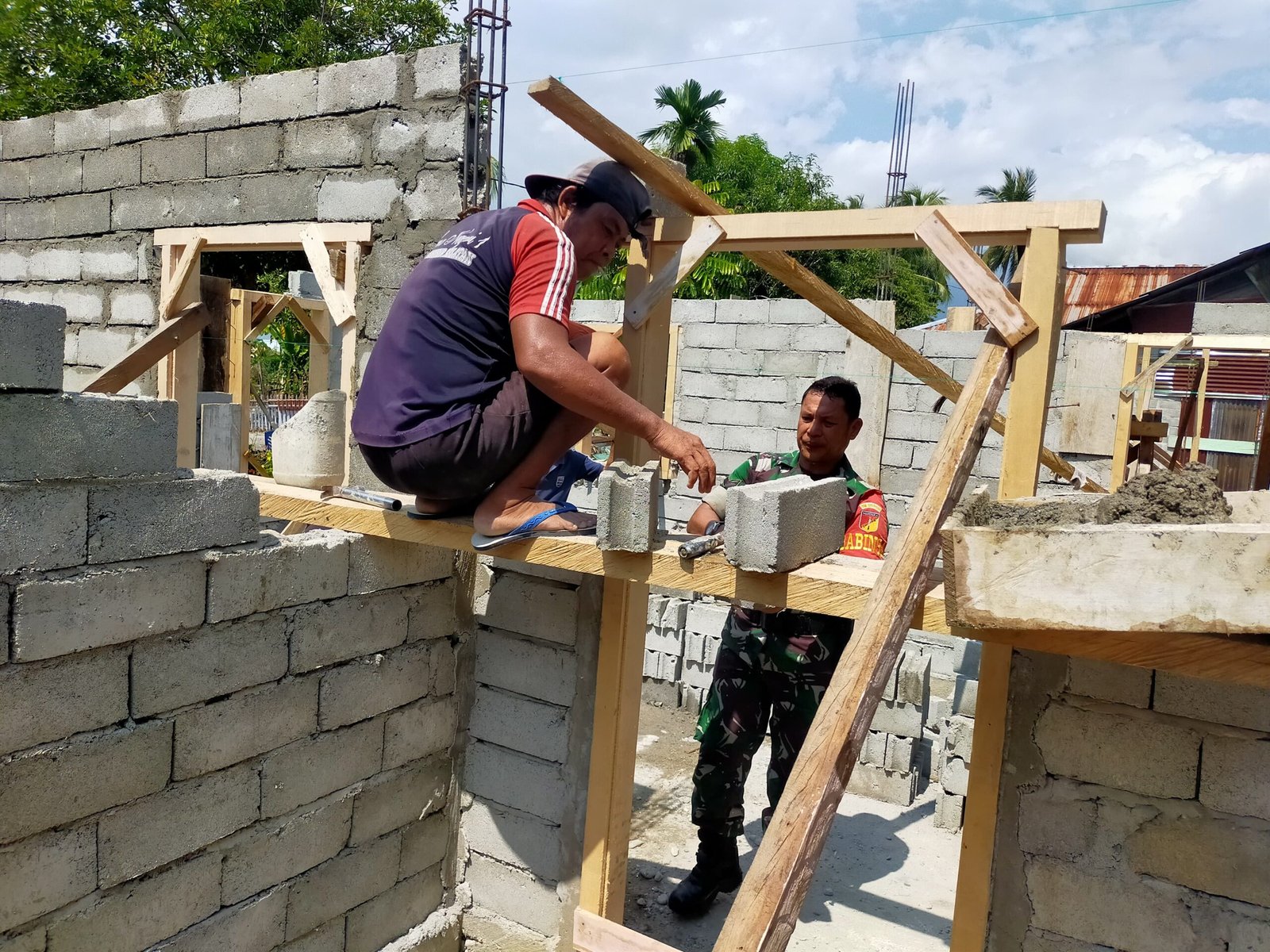 Kegiatan ini juga diwarnai dengan aksi nyata Sertu Suardi dalam membantu pemasangan batako pada rumah salah satu warga yang sedang dalam tahap renovasi.