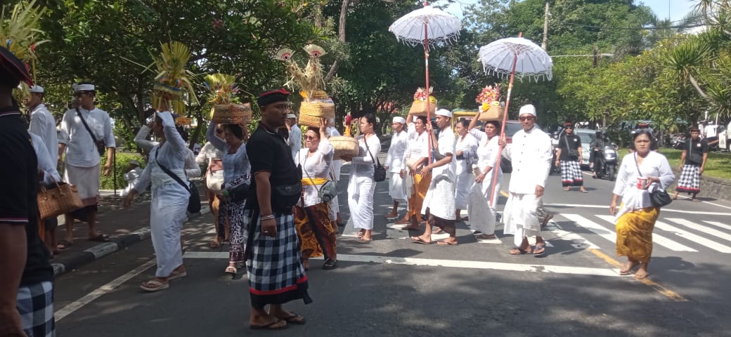 Klungkung, – Upacara Melasti yang merupakan bagian dari rangkaian Pujawali Padudusan Agung di Pura Sad Khayangan Goa Lawah berlangsung dengan meriah pada Minggu, 7 Desember 2025. Kegiatan ini dihadiri oleh ratusan warga Desa Pesinggahan, Kecamatan Dawan, Kabupaten Klungkung. Momen sakral ini dipimpin oleh Ida Pedanda dari Griya Satria, yang menambah khidmat suasana upacara tersebut.
