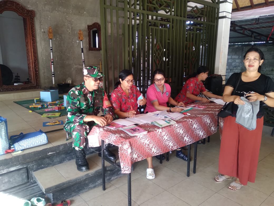 Gianyar – Sidan, Senin (21/7/2025) Sebagai bagian dari upaya mendukung program pemerintah di bidang kesehatan, Babinsa Desa Sidan, Koramil 1616-01/Gianyar, Serka I Wayan Mardika, hadir dan memberikan dukungan pada kegiatan Posyandu Siklus Hidup yang dilaksanakan di Banjar Bukit Sari, Desa Sidan, Kecamatan Gianyar.