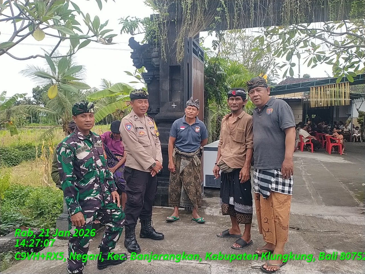 Klungkung, – Pada Rabu, 21 Januari 2026, upacara pengabenan almarhumah Gusti Ayu Wenten di Dusun Sarimertha, Desa Negari, Kecamatan Banjarangkan, Kabupaten Klungkung, berjalan lancar berkat kerjasama yang solid antara Babinsa, Bhabinkamtibmas, dan pecalang. Serka Gede Adiasa dari Koramil 1610-02/Banjarangkan memimpin pengamanan dan pengawalan, memastikan setiap rangkaian acara berlangsung dengan aman.