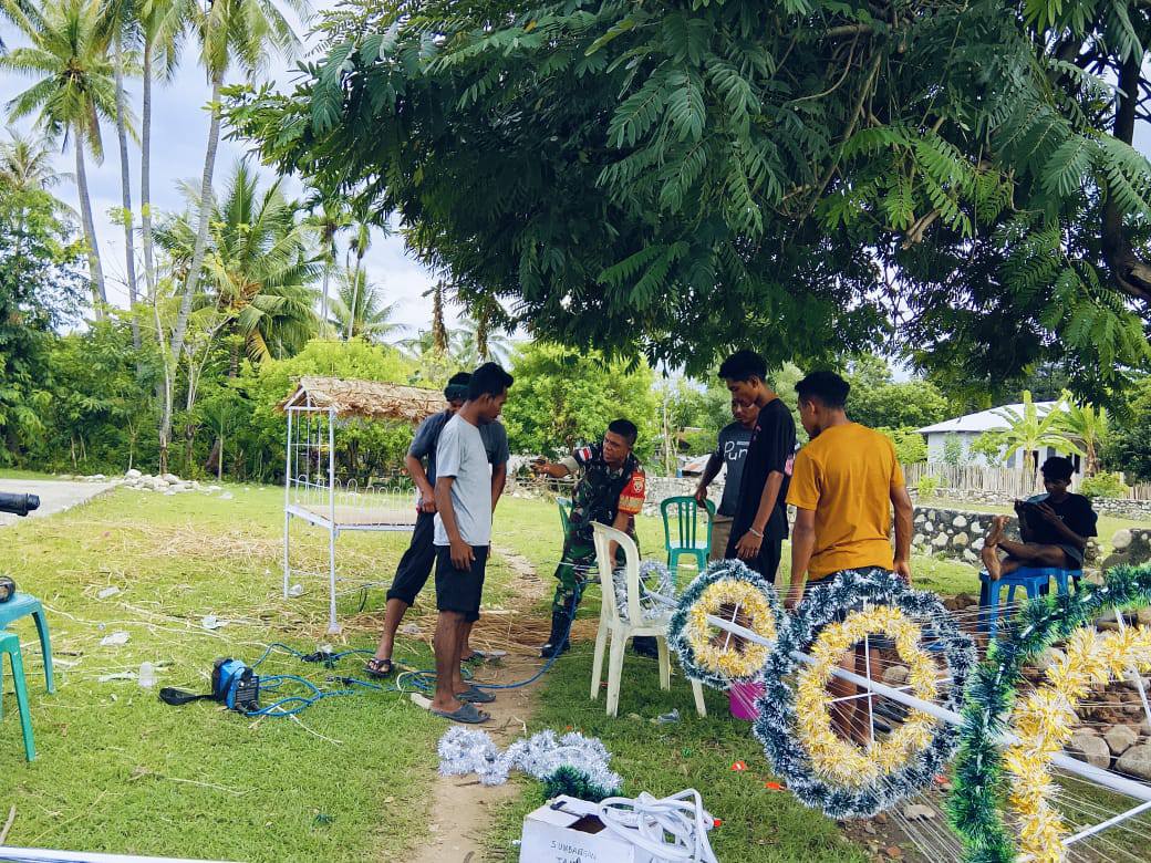 Dalam semangat merayakan Hari Raya Natal, Babinsa Desa Rainawe dari Koramil 1605-5/Kobalima, Serka Servandus Bou, bersama dengan para Orang Muda Katolik (OMK) Stasi Namfalus, melaksanakan kegiatan pembuatan pohon Natal dan kandang Natal di halaman Gereja Stasi Namfalus. Acara yang berlangsung pada Rabu, 24 Desember 2025, ini dilaksanakan di Dusun Namfalus, Kecamatan Kobalima, Kabupaten Malaka.