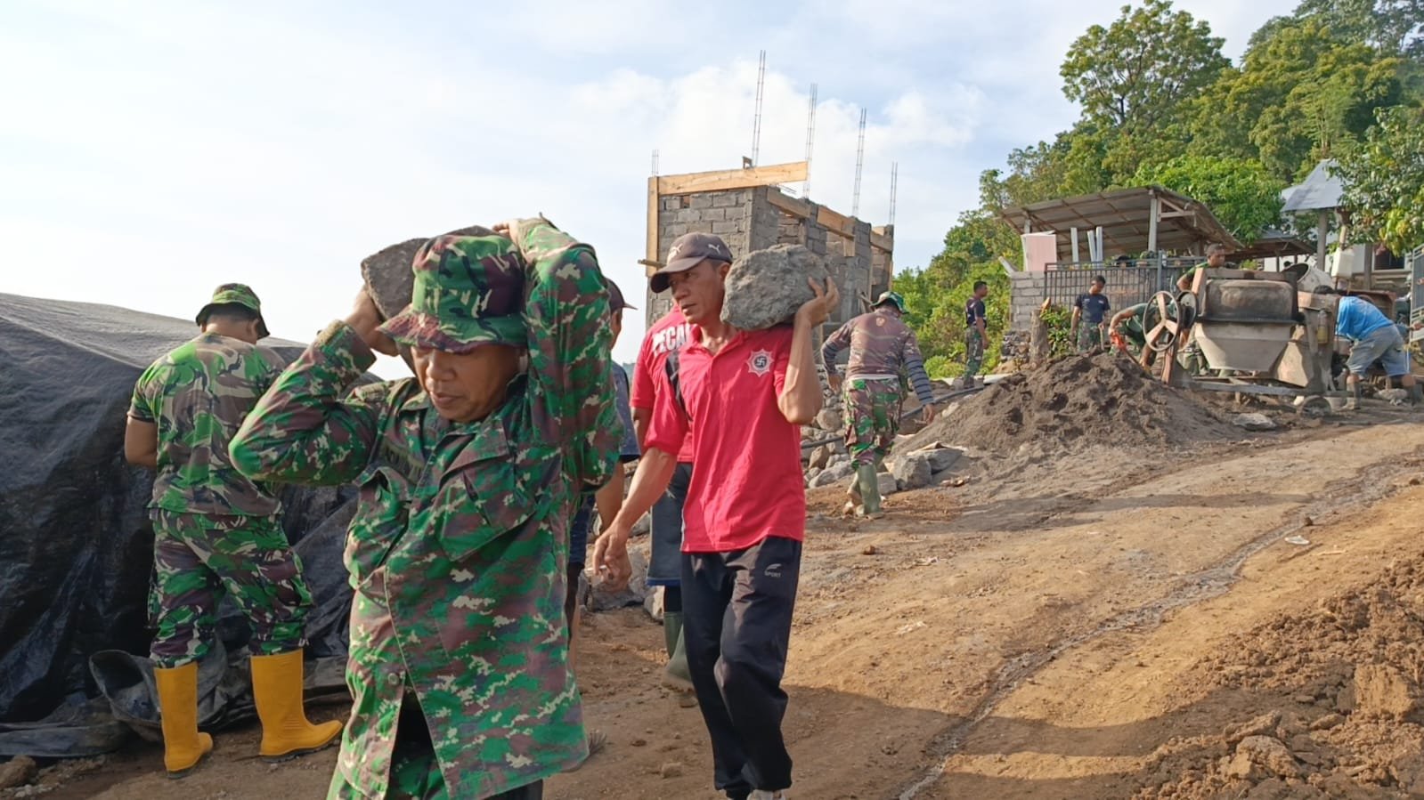 Memasuki hari ke-17 pada Kamis ( 22/5), pemandangan tak biasa terlihat di Banjar Dinas Seganti, Desa Depeha, Kecamatan Kubutambahan. Prajurit TNI bersama pecalang setempat bahu membahu memikul batu di pundak untuk mendukung pembangunan drainase sepanjang 501 meter di jalan baru yang dibuka.Kegiatan ini menjadi simbol nyata dari semangat gotong royong yang masih mengakar kuat di tengah masyarakat Bali.