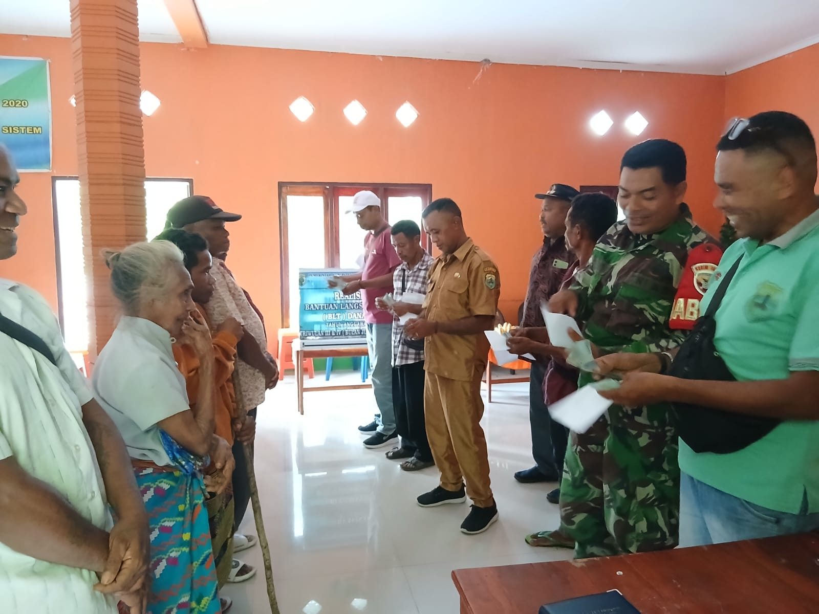 Amanatun Utara, TTS – Dalam upaya mendukung program pemerintah dan memastikan penyaluran bantuan sosial tepat sasaran, Babinsa Koramil 1621-04/Amanatun Utara, Sertu Agustinus Baka, berperan aktif dalam kegiatan pembagian Bantuan Langsung Tunai (BLT) Tahap III dan IV Tahun Anggaran 2025. Kegiatan ini berlangsung di Kantor Desa Saenam, Kecamatan Nunkolo, Kabupaten Timor Tengah Selatan, pada Senin, 23 Desember 2025, mulai pukul 11.30 WITA hingga selesai.