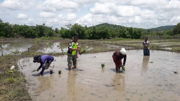 Dalam suasana yang hangat dan penuh kebersamaan, Sertu Timo bersama warga melakukan penanaman padi dengan tujuan untuk meningkatkan hasil panen di masa yang akan datang. Ia memberikan motivasi kepada para petani agar tetap optimis dalam mengelola lahan pertanian, yang mana menjadi sumber penghidupan utama bagi komunitas di desa tersebut. ‘Kita harus terus berupaya untuk memaksimalkan potensi lahan agar hasil panen semakin meningkat,’ ungkapnya.