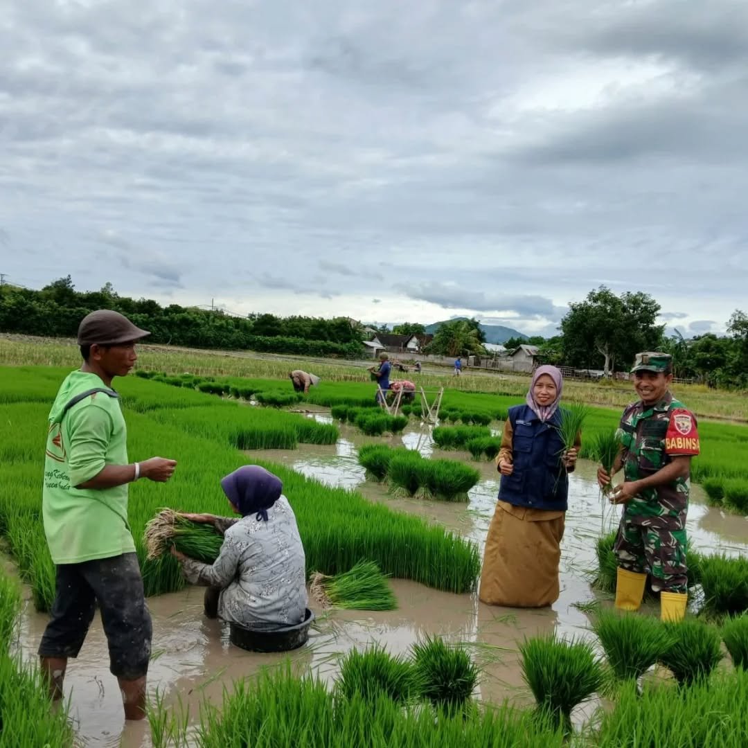 Lombok Barat, NTB – Dalam upaya mendukung ketahanan pangan nasional, Komando Rayon Militer (Koramil) 1606-04/Gerung melalui Bintara Pembina Desa (Babinsa) Telagawaru, laksanakan pendampingan ketahanan pangan bersama Kelompok Tani (Poktan) “Maju Bersama” di Dusun Paok Kambut, Desa Telagawaru, Kecamatan Labuapi, Kabupaten Lombok Barat, Rabu (22/1/2025).