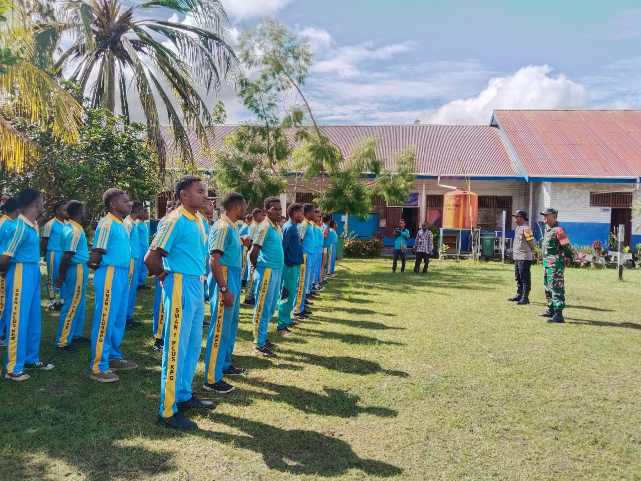 Nabire – Wujud sinergitas antara TNI dan POLRI ditunjukkan melalui kegiatan pembinaan generasi muda, dengan memberikan materi Peraturan Baris Berbaris (PBB) serta Latihan Dasar Kepemimpinan (LDK) kepada para pelajar SMA N KPG Bumi Raya Kabupaten Nabire, Sabtu (27/9/2025).