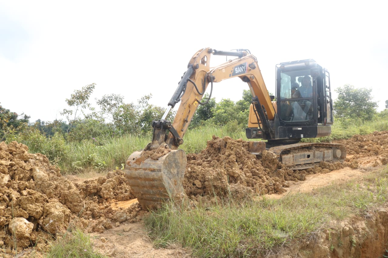 Komandan SSK TMMD Ke-125, Lettu Arh Suhendri, didampingi oleh Kepala Desa Suka Rahmat, Ibu Hasnawati, secara langsung memantau jalannya kegiatan, Kamis (31/07).