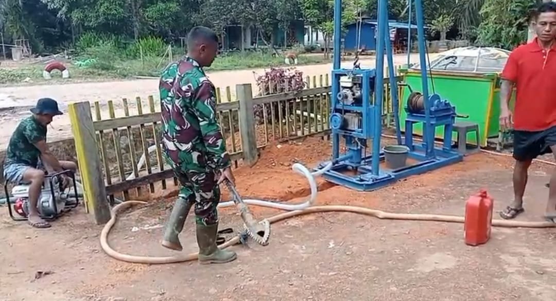 Lamandau, –Satgas TNI Manunggal Membangun Desa (TMMD) Reguler ke-125 Kodim 1017/Lamandau kembali melanjutkan kegiatan fisik dengan memulai pengerjaan sumur bor kedua yang berlokasi di Mushola Sarifuddin Nur, Desa Batu Kotam, Senin (28/07/25).