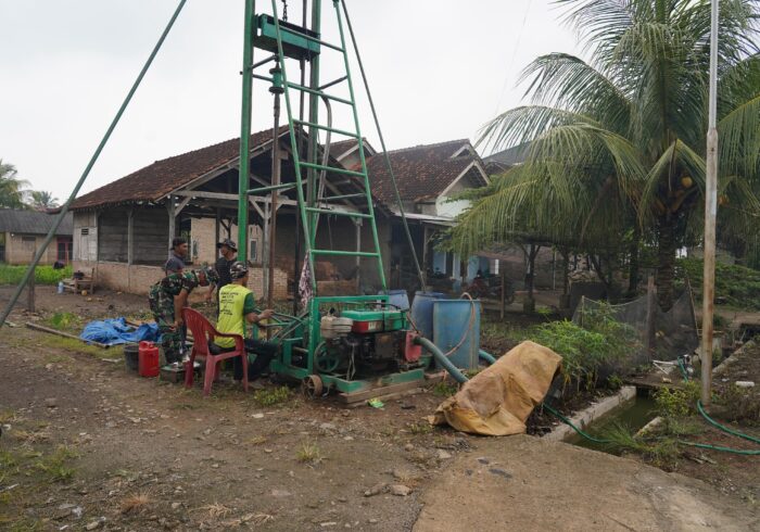 Hari ini terlihat Bapak-bapak TNI sedang menyelesaikan pekerjaan finalisasi acian semen dudukan profiltank. Artinya pekerjaan finishing untuk menyelesaikan semua tahapan pekerjaan sumur bor.