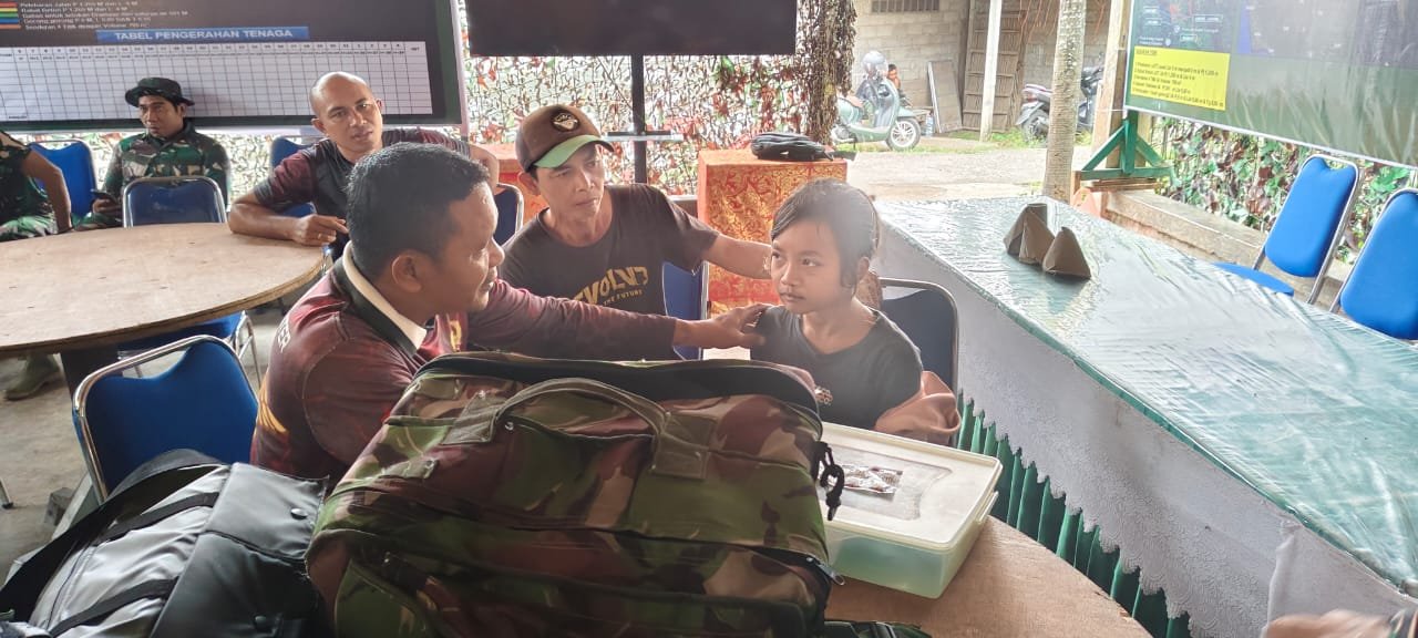 Sudah dua hari Luh Gina mengalami demam, pilek, dan pusing. Tanpa ragu, ia melangkah ke posko kesehatan di lokasi TMMD, sebuah langkah yang jarang dilakukan anak seusianya. Tim kesehatan dari RST Singaraja yang dipimpin oleh Serda Ketut Madeg Satria pun langsung melakukan pemeriksaan medis dengan penuh kepedulian.