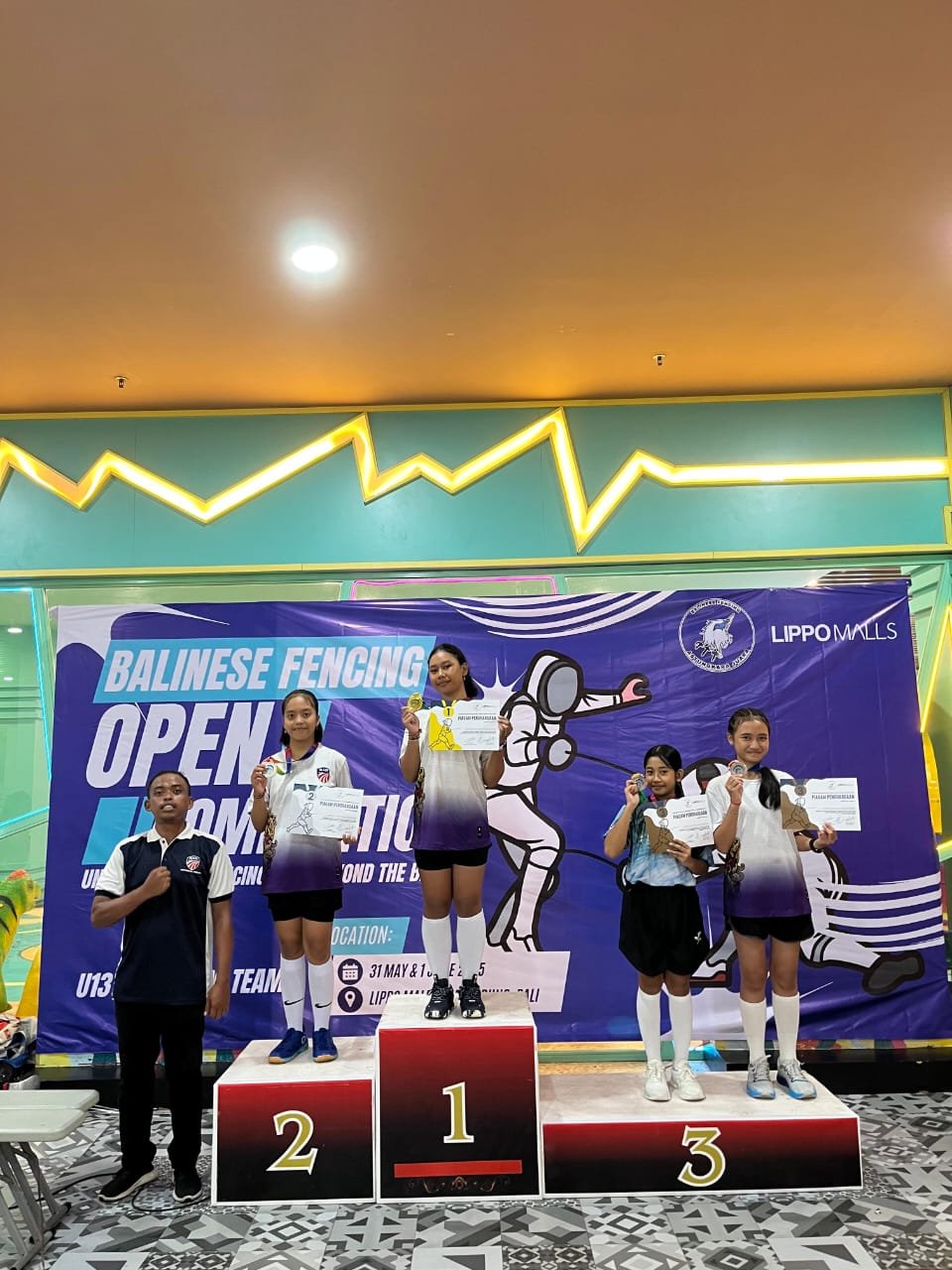 Ikut di katagori U 13 individu foil, srikandi cilik Kodim 1610/Klungkung ini meraih juara III meski ini adalah turnamen pertamanya di cabang olahraga anggar.