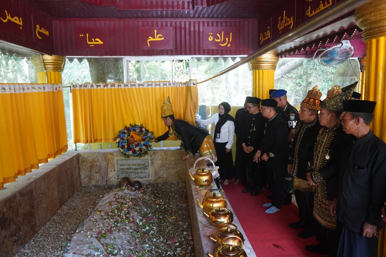 Upacara ziarah dipimpin oleh Bupati Aceh Barat, Termizi, SP., MM, berlangsung dengan khidmat dan penuh rasa hormat sebagai bentuk penghargaan atas jasa dan pengorbanan Teuku Umar dalam perjuangan melawan penjajahan demi tegaknya kedaulatan bangsa.