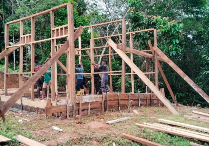Tampak terlihat semangat dan kekompakan personel Satgas TMMD Kodim 1012/Buntok pembuatan pondasi jembatan